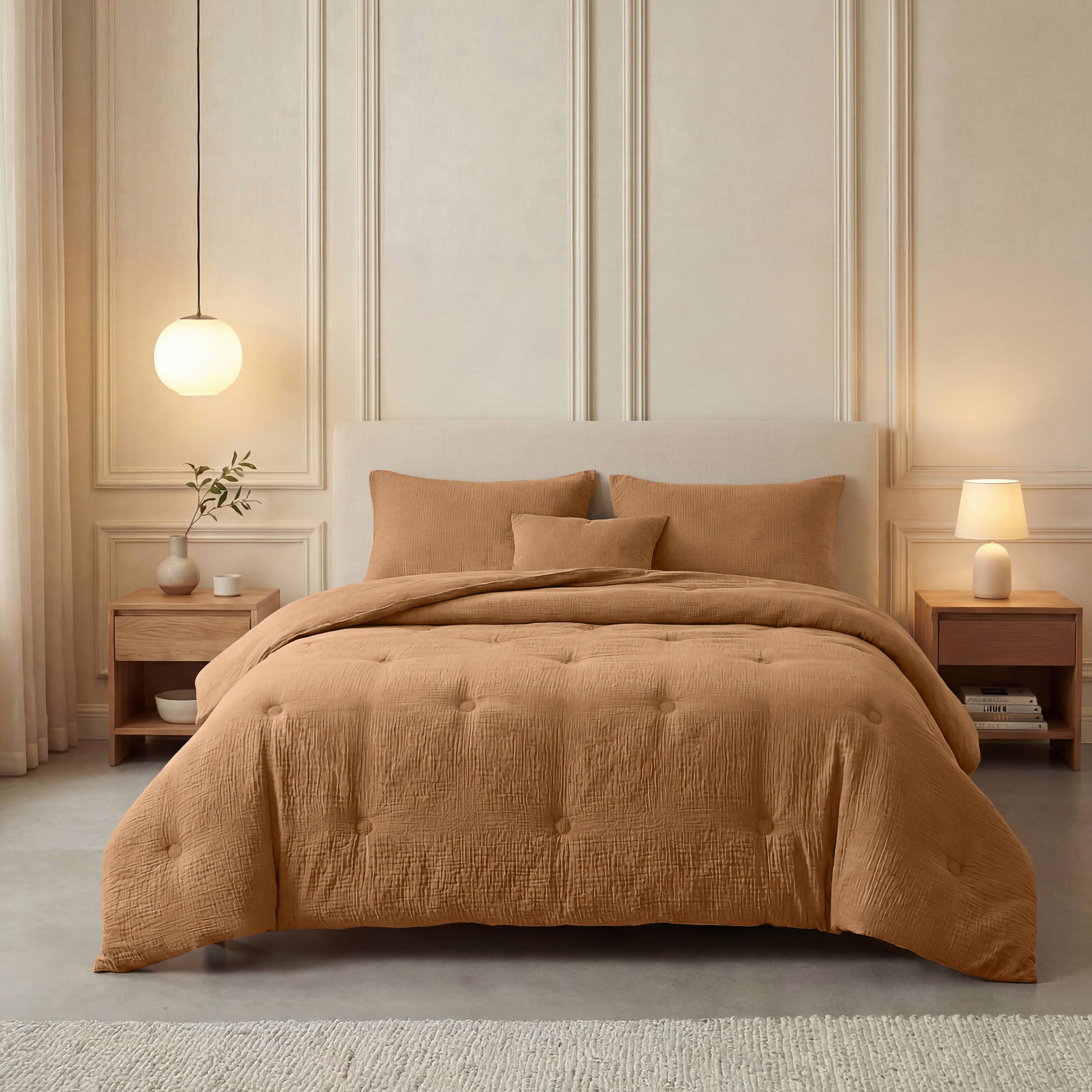 Musselin ist eine luftige, doppelt gewebte Baumwollart mit einer charakteristischen, lässigen Knitterstruktur. Vielleicht kennst du sie von Mulltüchern für Babys oder leichten Sommerblusen: weich, atmungsaktiv und geschmeidig und genau das macht sie so angenehm zum Schlafen.